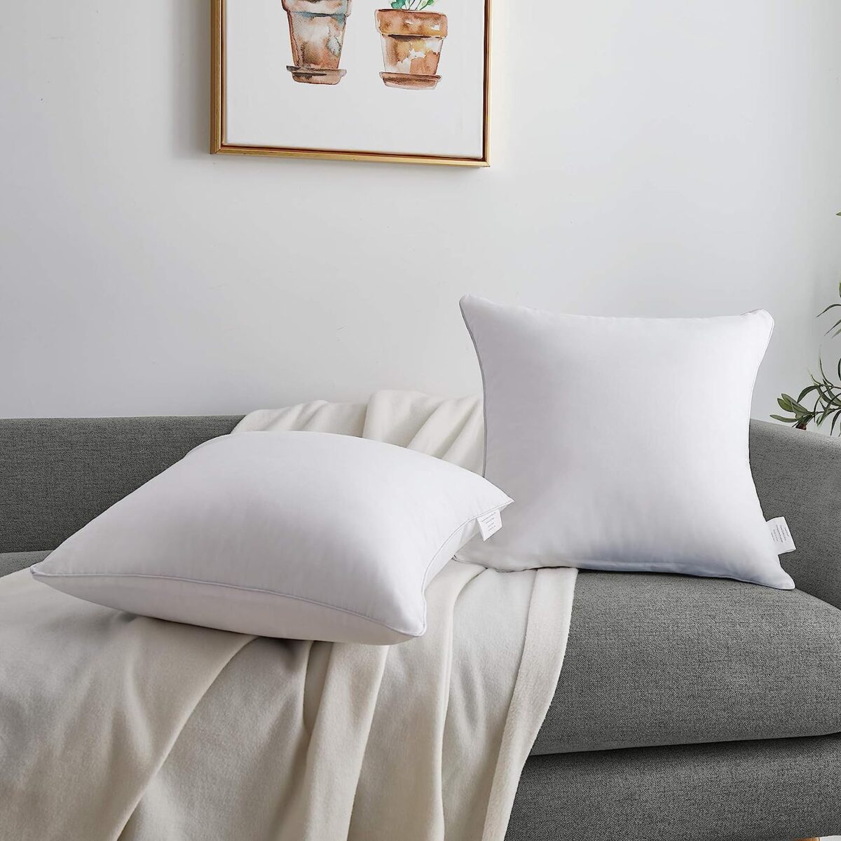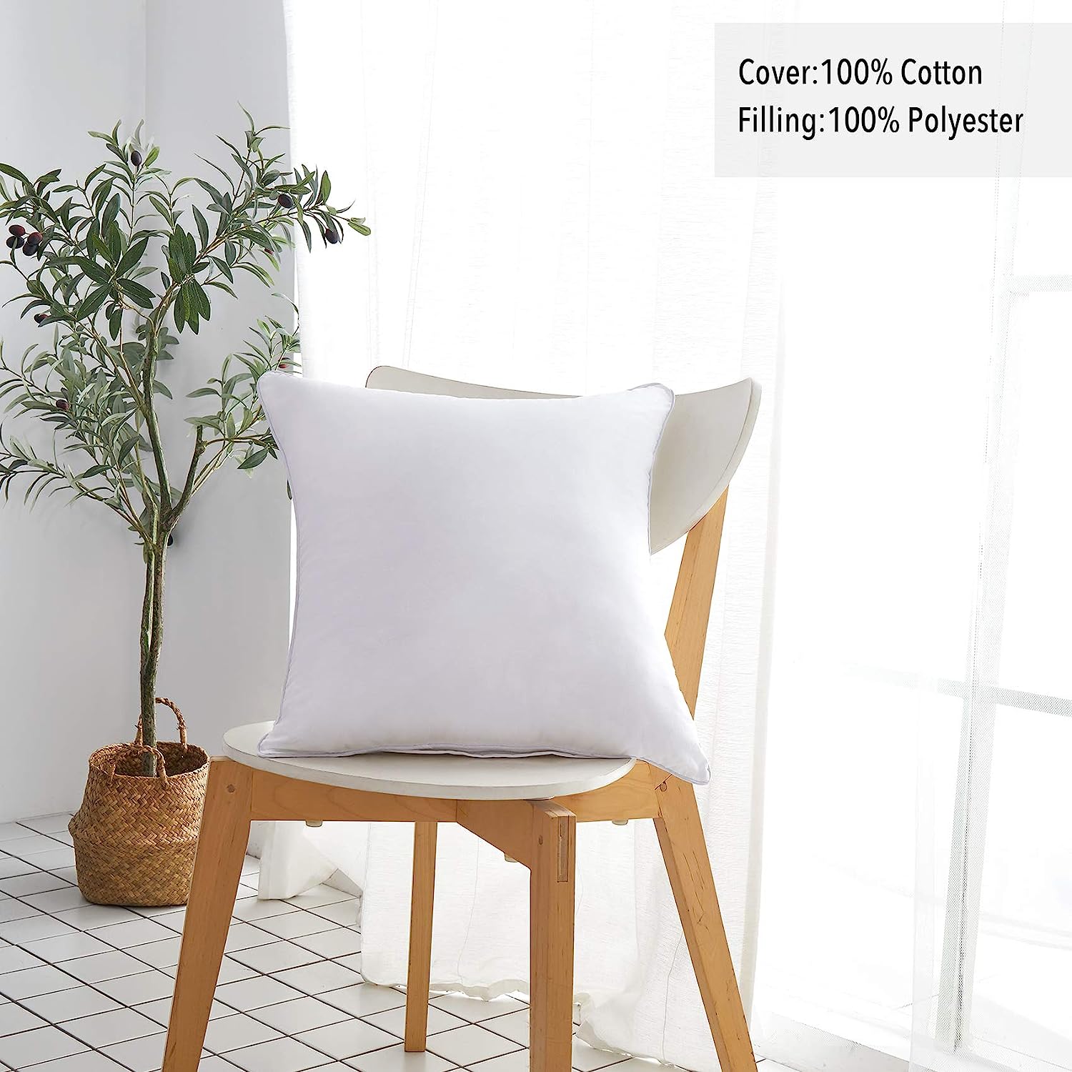 SQUARE PILLOW INSERT: The package includes 2 pieces of 20-inch by 20-inch pillow inserts with a Cotton Cover, which is breathable and skin-friendly.